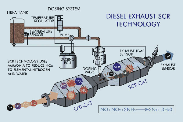 There are different emission standards around the world, setting specific NOx emission limits that require the use of SCR and DEF. The four main pollutants covered by vehicle emission legislation are Oxides of Nitrogen (NOx), Particulate Matter (PM), Carbon monoxide (CO), and Hydrocarbons (HC).